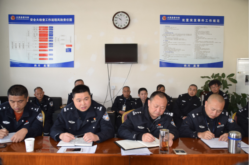 11月7日上午,大英县公安局党委委员、副局长段勇强指导看守所开展狱情研判分析会,县检察院驻看守所检察室主任、看守所医护室医护人员及全所民警、职工、辅警参加会议。