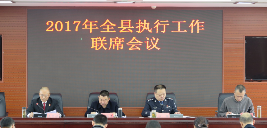 为了进一步贯彻落实中央、省、市关于基本解决执行难工作的决策部署,全面构建“党委领导、人大监督、政府支持、政法委协调、法院主办、部门配合、社会各界参与”的基本解决执行难工作大格局,23日下午,蓬溪县执行工作联席会议在蓬溪县公安局九楼会议室召开。